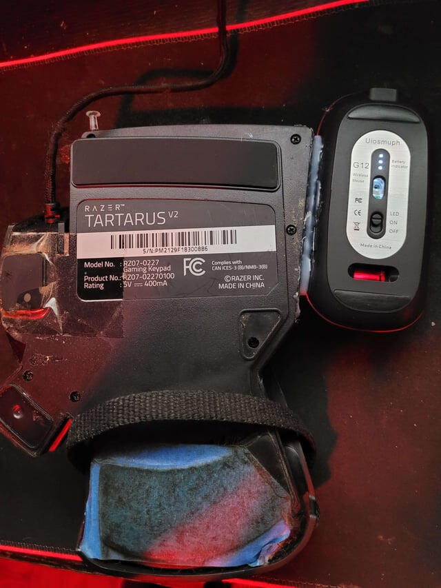 But because nothing existed that combined aiming, movement, and actions into one affordable, high-performance device.For a long time, I stopped believing I could build anything at all.I gave up on my dreams. I was living paycheck to paycheck on disability, barely getting by. Before that, I was homeless.Life became about survival.And I didn’t want it to stay that way.So I Built OneI took a Razer Tartarus, glued a mouse to it, added a strap, and remapped everything.Aim. Move. Shoot. Interact.
